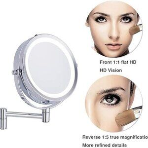 Perfect for the bedroom or bathroom this 180° rotatable mirror, can fix at any position. Controlled by on/OFF switch on the mirror, turning LED lights whenever you want. Powered by Plug. Double side with magnifying mirror, can see much better detail and apply makeup precisely.