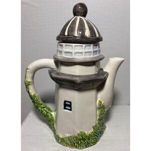 Lighthouse Themed Ceramic Teapot With Lid 8" Tall Beach House Nautical