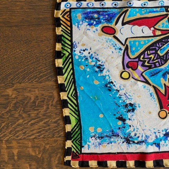 Beautiful 100% silk scarf in bold primary colours. Worn once.