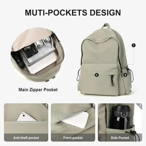 【Multi-pocket Backpack】The book bag with a main zipper compartment,a zipper front pocket,two drawstring side pockets and One anti-theft zipper pocket.The side pockets can hold water bottles and umbrellas. The spacious compartments and multiple pockets of the backpack keep your belongings organized and more easy to find.