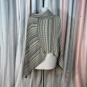 Lightweight Black, Brown & White Striped Pullover Knit Poncho
