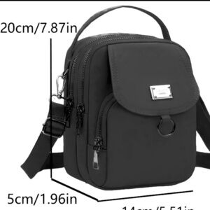 Lightweight Black Nylon Crossbody Bag with Multiple Zippered Compartments NWOT