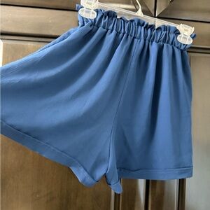 Paperbag waist blue shorts with a drawstring. New NWOT, purchased in Europe but never worn. Although tag says m/l best suited for size M (European sizing). No fabric tags but no iron fabric. Perfect for casual wear.