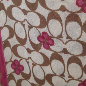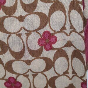 Coach scarf; lightweight; 70 x 20 inches; has a snag going across (tried to take picture - but you can't see it well); washed (not ironed because I am a bad ironer);