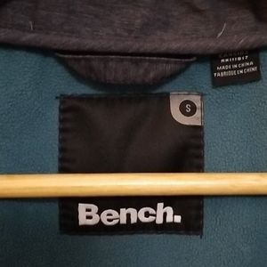 Grey, lightweight water resistent Bench jacket. Perfect for spring and fall seasons. The length ends just below the hip depending on your height. It is very flattering and great material if you own pets as hair does not stick to it.