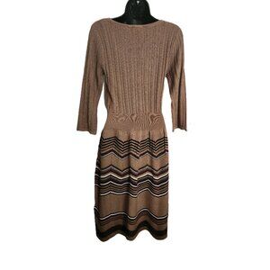 Comfortable and lightweight. This casual knit midi dress can be worn with boots or dress shoes. It measures 40" from shoulder to hem. Pit to pit is 16" and sleeves are 18". Nicely fitted around the waist and hips. The skirt flares from the waist.