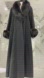 Gorgeous black wool cashmere blend 49” full length coat with real European fox fur on cuffs and collar by Lisa Fashion of Toronto