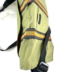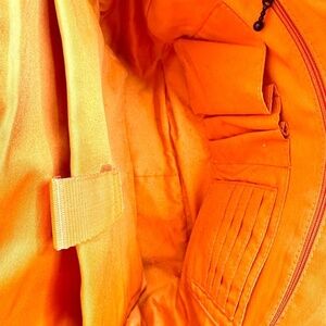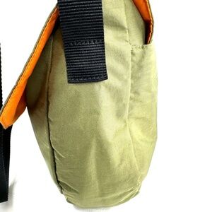 Olive green exterior and fun orange interior in nylon.