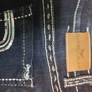 This skirt is in Like New condition with no flaws to note. Features zipper and button closure at front, front pockets and back pockets, nice sequin detail. Measurements Waist 15 inches, total length of skirt 21 inches