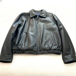 Like New CroftandBarrow Men’s Quilt Lined Leather Bomber Jacket Black Size Med.
