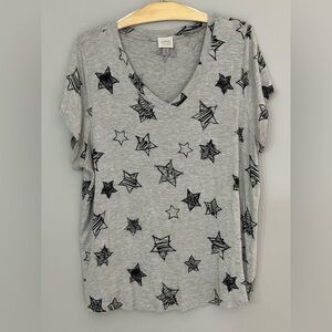 💛Like New💛 Cupio: Women’s Star Print Short Sleeve Shirt- Size 1X. Previously owned- Like new condition with little to no visible wear or fading. (May possibly be a NWOT🌟) Cute short sleeve top - great for everyday wear & layering. Comfortable - made of 95% viscose & 5% spandex.