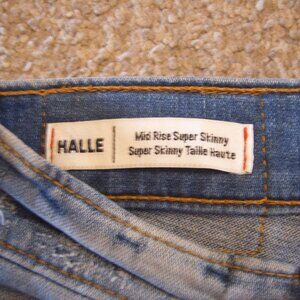 Waist sz 26", Zip fly. Mid rise super skinny.