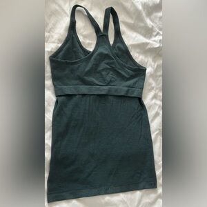 Previously owned, like new condition. This size 10 Lululemon sleeveless top has a rich colour & classic design. There are no removable bra pads included in this listing - sleeveless top only. There is little to no visible wear/washing wear. There is no size dot with a style number or rip tag including the material contents, however, there is an embroidered 10 on the interior waist hem (last photo) Please only purchase if agreeable to to the missing details to prevent a discrepancy concern upon receipt of the item. Photos #4-5 are a size visual. Photos #6-7 are the top posed inside out.