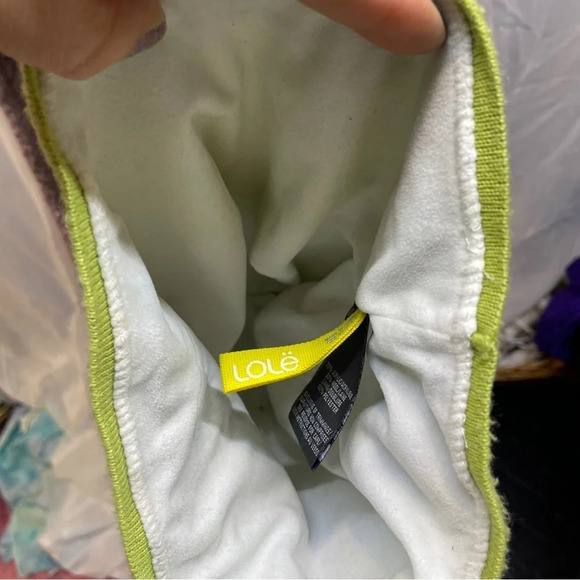 Like beanie with breaded pompom on top and geometric pattern design good condition OS