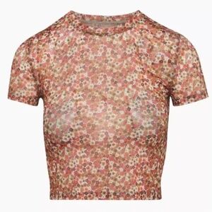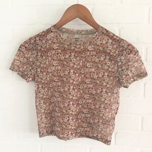 Like new Aritzia Sunday Best Tee Dixie Mesh Floral Print Orange Pink Mod XS