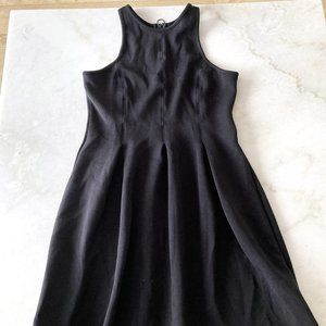 Like new! Athleta black sleeveless dress fit and flare, high neck pleated A line