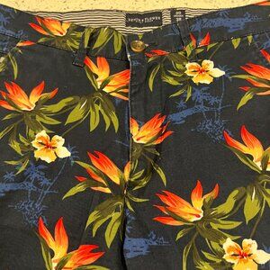 Like new DENIM & FLOWER Navy Tropical Floral Chino Shorts Size 30