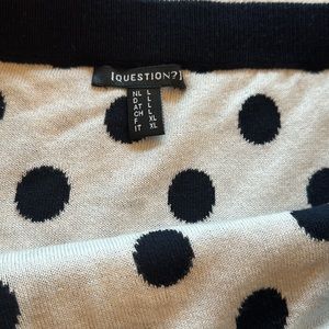 Waist is 32”. Stretch to this knit skirt. Navy blue background. Length is 26”. In top shape and condition! Question is a quality Dutch brand! Holds up beautifully and good quality