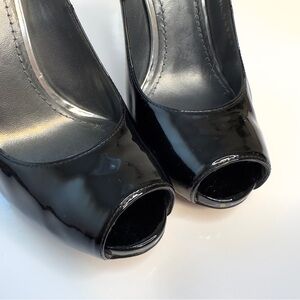 Like new! Stuart Weitzman Black Patent Platform Round Toe Pumps Size 6