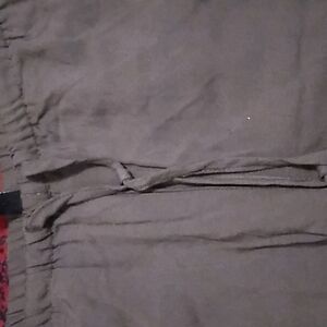 like new olive green 100% viscose jogger with working waist tie. ankle length 27" inseam