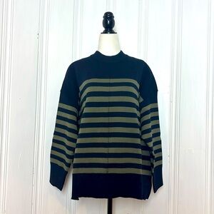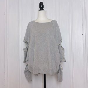 This is that perfect oversized cozy knit everyone looks for. Features beautiful cable detailing down the front with textured knit panels and ribbed trim at neckline, cuffs, and hem. Slight high-low hem for a flattering relaxed fit.