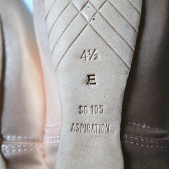 Like-new Bloch ballet pointe shoes "Aspiration', fit 'E'. Women's/Girls size 4.5 - they have not been broken in yet and are in excellent condition. Satin upper and leather outsole. 'A' Paste and doesn't have box cushioning. This style is designed for dancers with more developed muscles in the feet and legs, providing stability and support with a wide box and strong shank. For the advanced dancer with highly flexible insteps and ankles. Shank allows the foot to arch at the ¾ point with the heel being able to bend away from the foot. The platform is both high and wide to allow maximum balance when en pointe. Deep U-shaped vamp, high-cut sides and wide box provide stability and support. Smoke-free, pet friendly home!