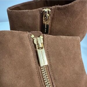 Like-New- Michael Kors Brown Gold Suede Side Zip Heel Ankle Boots (6)