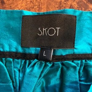 Description: Original silk-taffeta party-skirt by SKOT Apparel in an electric teal/peacock blue-green colour. Condition is perfect - bought the wrong size (unworn). Will arrive clean and ready-to-wear from a pet and smoke-free home.