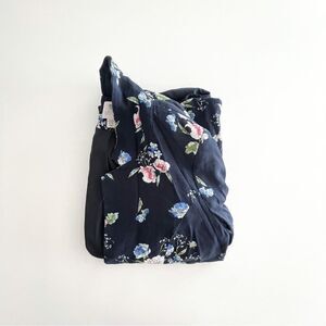Lila Rose Floral Open Blazer Navy Blue Long Sleeve Women's XS. Lined, back vent, notched collar. Rayon with Polyester lining. Dry Clean. Very good used condition. Please see photos for approximate measurements.