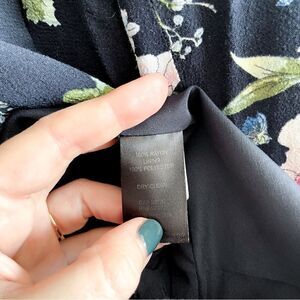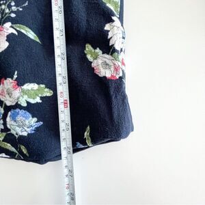 Lila Rose Floral Open Blazer Navy Blue Long Sleeve Women's XS. Lined, back vent, notched collar. Rayon with Polyester lining. Dry Clean. Very good used condition. Please see photos for approximate measurements.