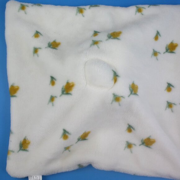Measures approx 15 inches square and features gold & green floral design on white background. Elephant plush is grey with gold bows in ears.