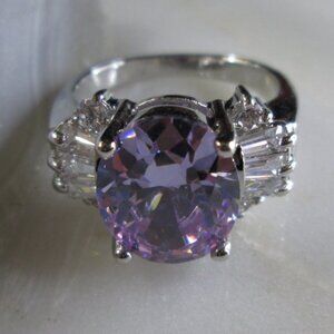 Lilac bauble cubic zirconia cocktail ring. Flanked by clear cz stones. Silver plated metal alloy. Simulates Amethyst and Diamond. Purchased 2008, never worn.