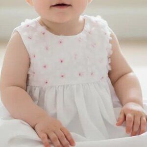 Lili Gaufrette White Sleeveless 3D Tulle Floral Lightweight Dress 9 Months