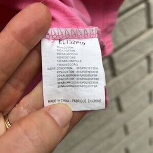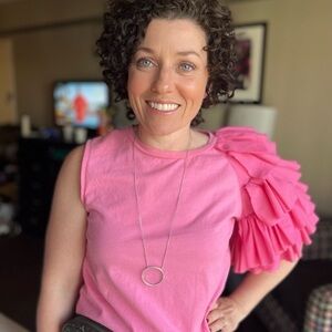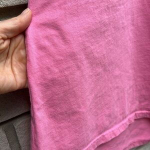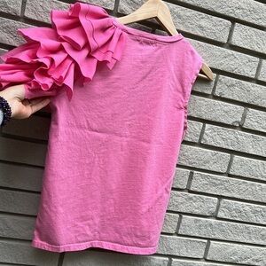 Lili Sidonio x Molly Bracken Pink Top. Asymmetrical with fun and fabulous flamenco style sleeve on one side. Crew neck, cotton, slightly high-low hem.