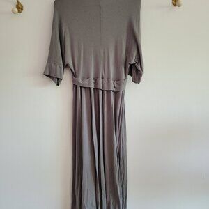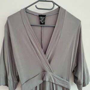 made of incredibly soft Bamboo Viscose /Certified Organic Cotton/ spandex blend jersey. Made in Nelson BC since 2006. Soft grey that goes with everything. Size Large.