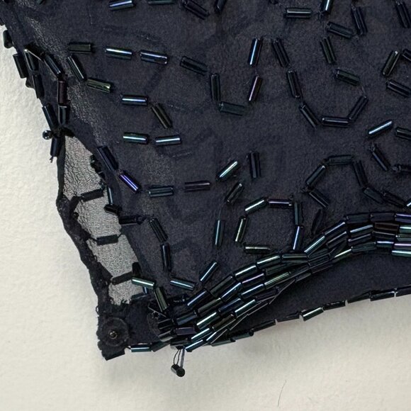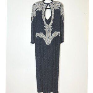 Lillie Rubin Women’s Midnight Blue Beaded V-Neck Evening Gown W/Sheer Sleeves