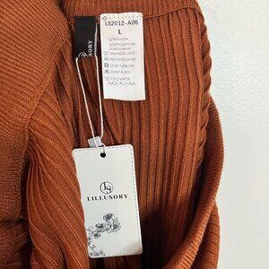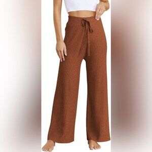 Lillusory Women’s Ribbed Knit Wide Leg Pants - Brown - Size L
