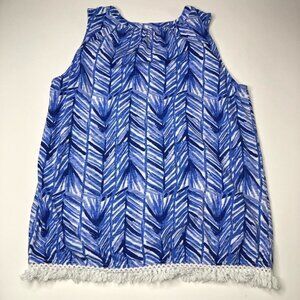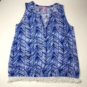 Lilly PULITZER Kipper Lapis Periwinkle Blue Fern Beachy Boho Chic Fringe Tank