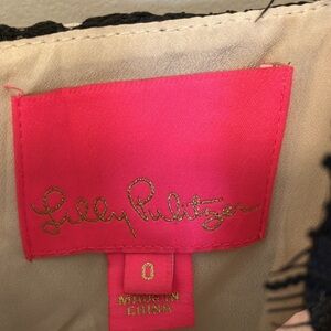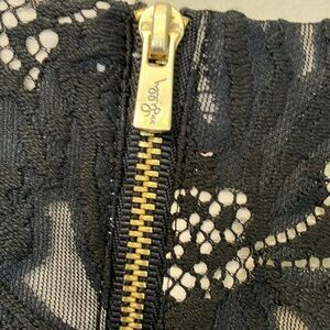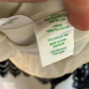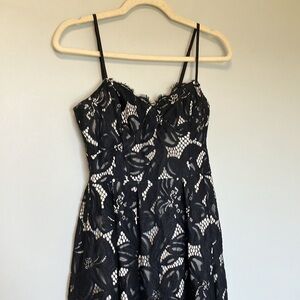 Elegant black lace dress with white accents. Spaghetti straps. Perfect for evening wear.