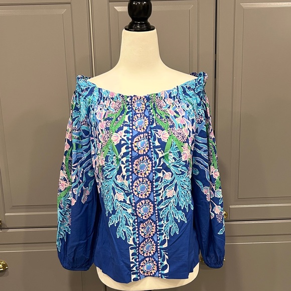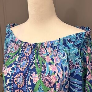 Lilly Pulitzer Blue Floral Off-Shoulder Blouse