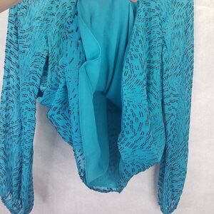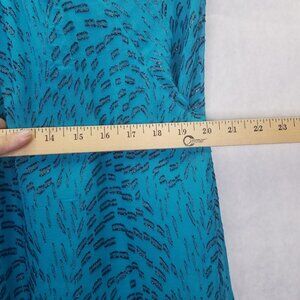 Lilly Pulitzer Caline Blouse Women M Teal Bay Silk Swirl Clip Silver Puff Sleeve