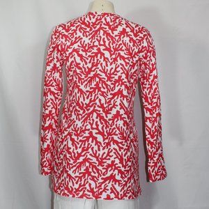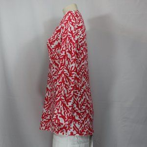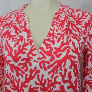 Lilly Pulitzer Shirt Women's Small Red white blend Cotton Coral Print Longline Tunic. 60% cotton,40% modal; v neck, . made in Vietnam Excellent condition.