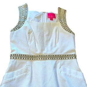 Lilly Pulitzer Dana Stretch White Shift Dress, Size2 Embroidery/Sequins