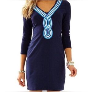 Lilly Pulitzer dark blue v neck dress. Heavier stretchy material. Bundle for savings , feel free to send me offers