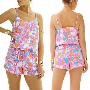 Lilly Pulitzer Deanna Romper Shorely Blue Feeling Tanked Removable Belt Small