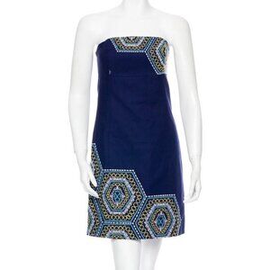 Lilly Pulitzer Dress Size 0 US Navy Blue “Honeycomb Bowen” Strapless Embroidered
