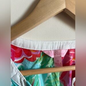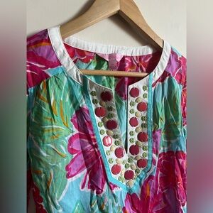 Lilly Pulitzer Embellished Tunic Floral Blouse - Pink and Blue XS Cotton