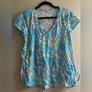 Lilly Pulitzer Etta V-Neck T-shirt in the Bermuda Blue Turtle Szn print