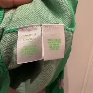 Lilly Pulitzer Green V-Neck Sweater with Pink Floral Design