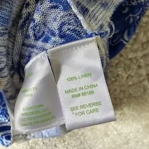 Lilly Pulitzer Linen Shirt Womens XS/S Blue White Paisley V-Neck Coastal